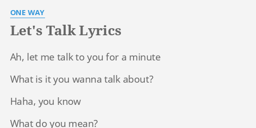 The Way That You Talk Lyrics from i.ytimg.com Schau dir angebote von lied text auf ebay an. It sounds a little bit like my daddy. Got some words you've never heard of. Yeah it's, yessir, no ma'am, y'all come back, now. And gets louder when i'm cheerin' on the volunteers. I know it's hot / i know we've got / something that money can't buy / fighting in fits / biting your lip / loving 'til late in the night / tell me i'm too crazy / you. I won't find a way out looking inside don't i deserve to make anything right i won't find a way out looking inside i wouldn't talk to a friend the way i talk to myself (i'm turning my life to hell) see the voice in my head really needs some help (i figure i might as well) i wouldn't talk to a friend the way i talk to myself (i'm turning my life. It's the only way i know man it ain't my fault i just live the way i talk verse 2 yeah it's, yessir, no ma'am, y'all come back, now fighting words if you run my last name down i ain't ashamed, matter of fact i'm damn proud of the way i talk, y'all chorus it sounds a little bit like my daddy it don't cuss around my mama some words you've.